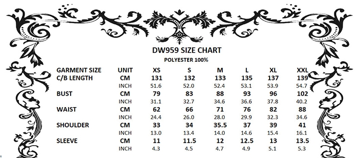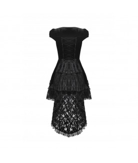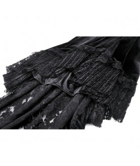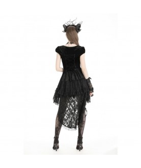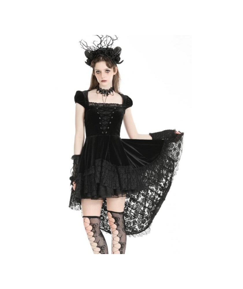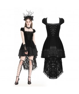 Robe princesse gothique à manches bouffantes et queue d'arrondie sombre.