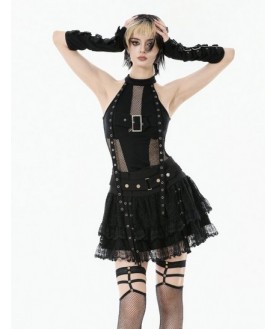 Jupe noire à large ceinture style punk