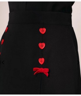 fentes à l'avant, ornées de cœurs rouges et de nœuds,