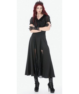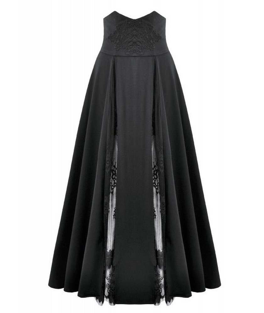 Jupe longue gothique 2 fentes au niveau des jambes laissent apparaitre une légère dentelle