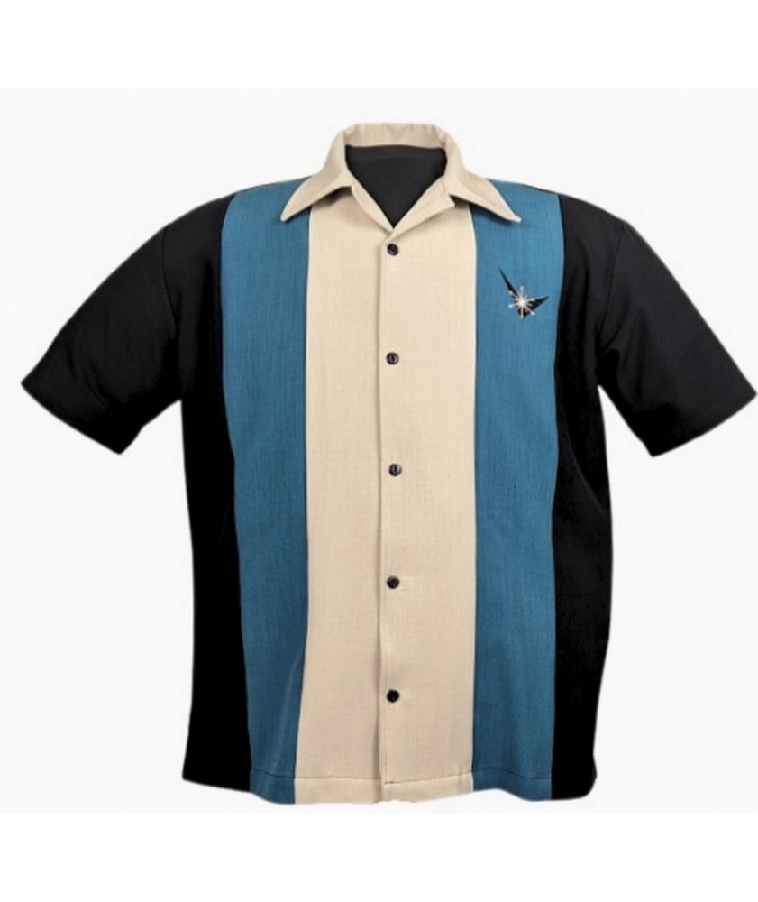 Chemise bowling Rockabilly Steady Atomic mad men Bleue